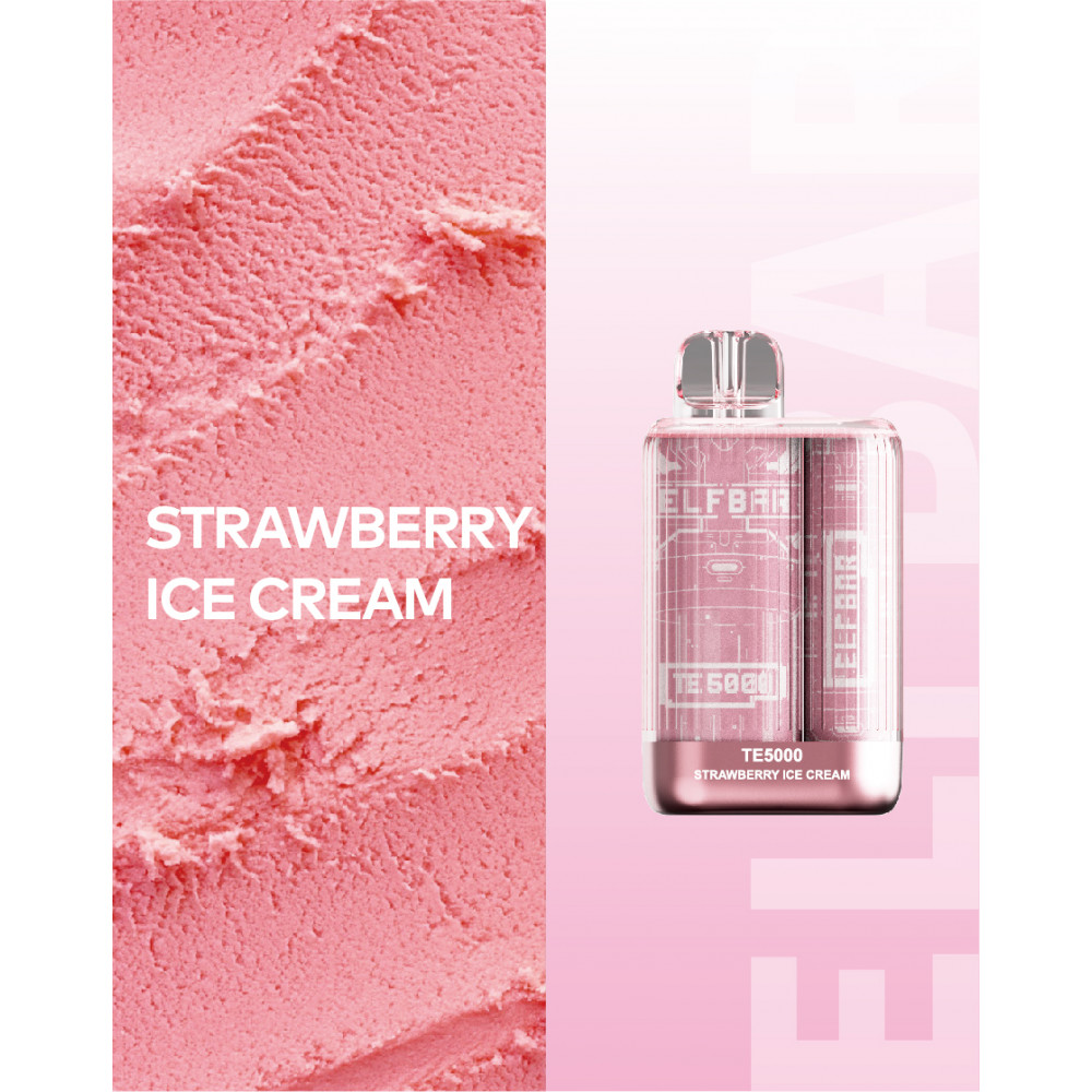 Elf Bar видыTE 5000 Elf Bar вкусыКлубничное Мороженое Elf Bar количество в блоке10 шт
