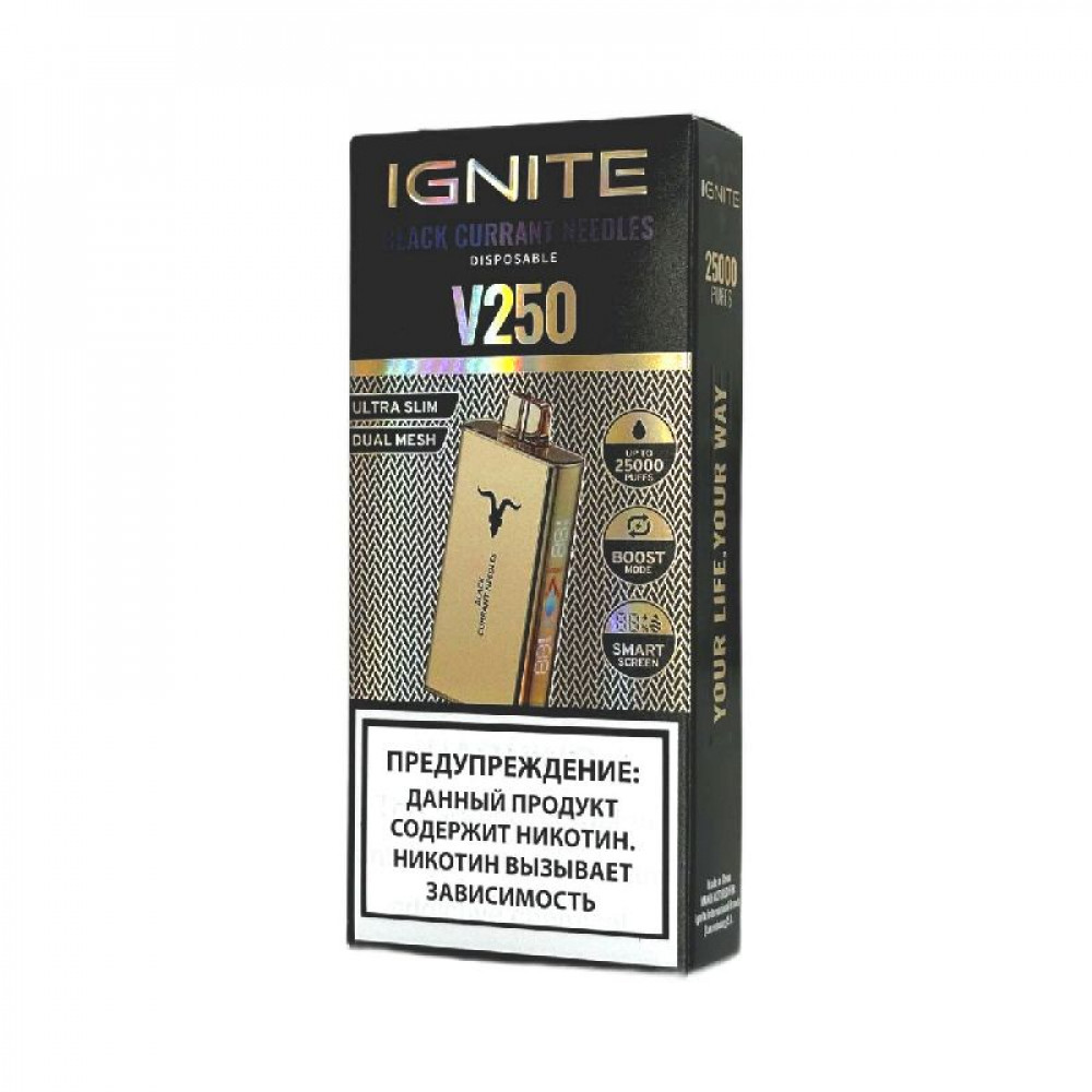 Электронная сигарета Ignite V250 Gold 25000 - Black Currant Needles (Черная смородина хвоя) - купить в Балабаново
